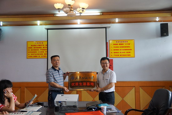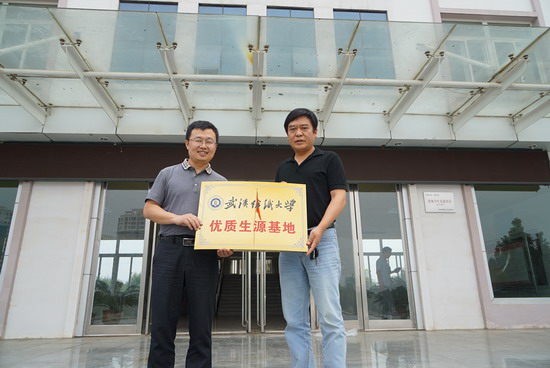 环境学院夏院长代表学校与新野一中、襄阳二中签定共建优质生源基地协议书并授予“武汉纺织大学优质生源基地”牌匾。