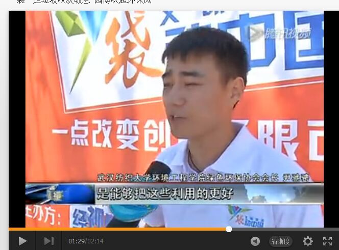 活动中,湖北经视的记者对我校绿色环保协会会长尹驰骋进行了采访,详聊了垃圾分类和垃圾处理等话题,“垃圾只是放错地方的资源,如果能更好的利用这部分资源,我们就能节约更多的能源和资金”尹驰骋说到。