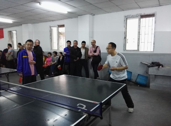 4月23日,在南湖校区乒乓球场,环境学院分工会组织教工代表队参加了学校乒乓球比赛。