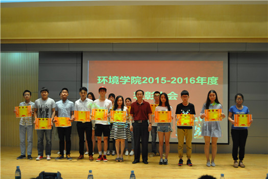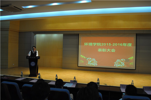 6月5日下午,环境学院在8栋学术报告厅隆重举行2016年度优秀学生表彰大会。学院党委书记罗汉春,党委副书记张莎莎,副院长陈洪高、李进平,学院各级辅导员老师以及获奖学生代表参加了大会。