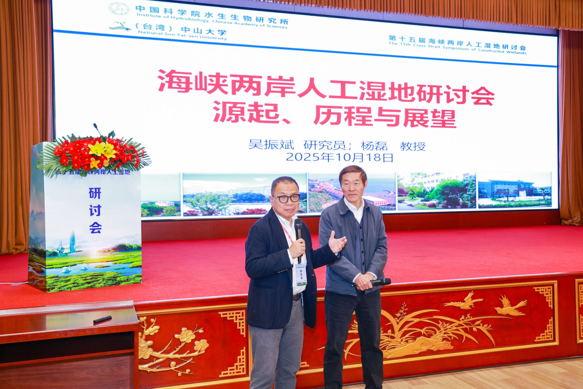 海峡两岸人工湿地研讨会始于2008年,由吴振斌教授、杨磊教授等发起组织,已分别在武汉、高雄、海口、台北、宜昌、杭州、嘉义、银川、深港澳、高雄、武汉、桂林、台中和济南等地成功举办了十五届,参会人数约4800余人次,其中两院院士等资深专家50余位,发表论文750余篇,报告600余场。研讨会为来自两岸四地的湿地领域专家学者与工程技术管理人员构建了一个重要平台,助力各方在理论探索、技术研发与工程应用等方面实现成果共享与深度合作,有效推动了湿地保护理念的普及、生态工程技术的进步以及生态修复产业的发展。