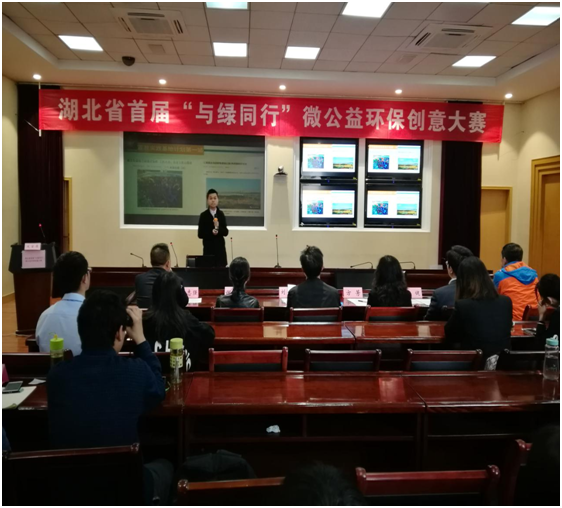 由湖北省环境保护厅主办的湖北省首届“与绿同行”微公益环保创意大赛决赛于2018年4月14日(周六)在湖北省环保厅举行,参加决赛包括华中科技大学、武汉理工大学,等高校在内16个入围团队,最终角逐出8个“优秀项目”和8个“入围项目”。 我校绿协的“心系汤逊湖、情牵藏龙岛”大学生环保宣教实践基地计划获得第一名及2000元项目启动资金。