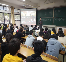 为认真落实全国“两会”精神,加快推进高质量跨越式发展,增强大学生的思想政治理论素养。环境工程学院于3月10号下午五点半在六栋教学楼110教室召开“学习2019年全国两会精神”的大会各级辅导员参加了此次大会。