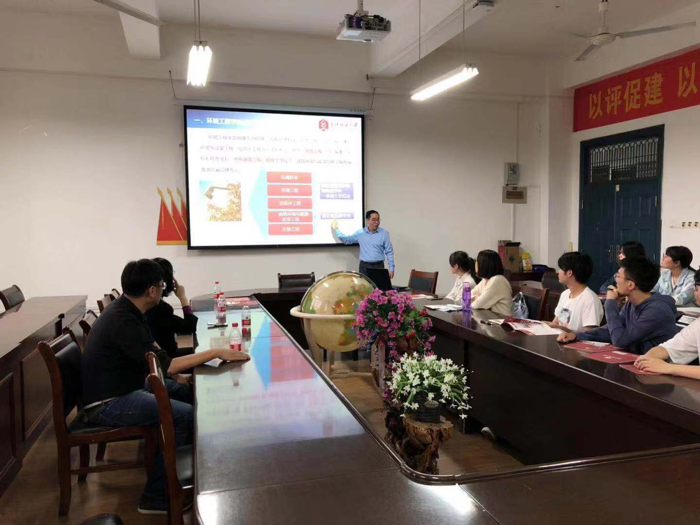 谢晓萍书记向湖北师范大学学生介绍了武汉纺织大学的基本情况,潘飞副院长给学生进行了2020年我院研究生招生工作政策、导师情况、实验室情况介绍。