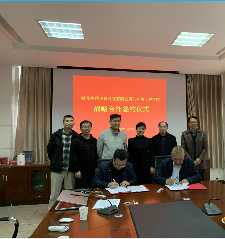 湖北中碧环保科技股份有限公司是一家专业从事工业三废、土壤与河湖修复、环保成套设备的生产与销售、工业废弃物、城市垃圾再生利用、水资源净化工艺的研发、环保技术服务为一体的国家高新技术企业。 公司与多所“985”、“211”高校结成了产、学、研联合体,建立了“校企共建水处理技术研发中心”、“中碧环保(李圭白)院士工作站”、湖北省“企业技术中心”、湖北省高难度工业污水处理的“工程技术研究中心”等研发平台。我院与中碧环保在污水处理的深度合作必将极大的促进教学、科研和人才培养的提高,互利共赢。