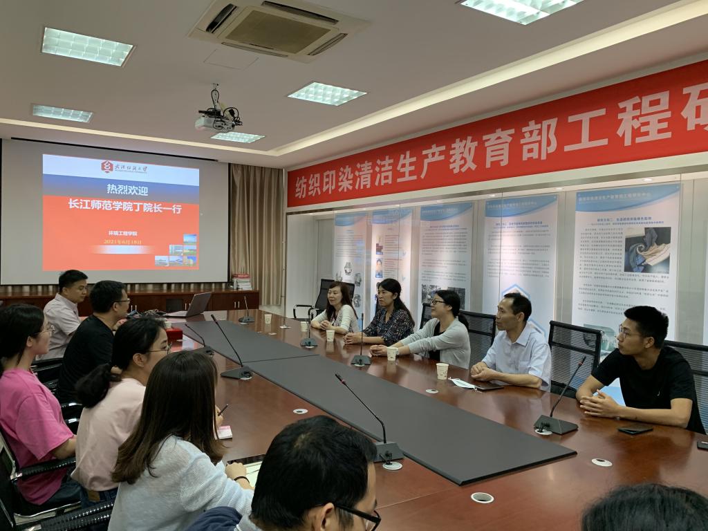 618日上午,长江师范学院绿色智慧环境学院丁世敏院长带队一行4人到环境工程学院考察交流,双方就推进开展研究生联合培养、学科建设、硕士点建设和研究生教育工作进行了广泛深入的交流。学院院长夏东升,党委书记谢晓萍、副院长李进平、潘飞及部分青年教师和研究生代表参加了坐谈会。