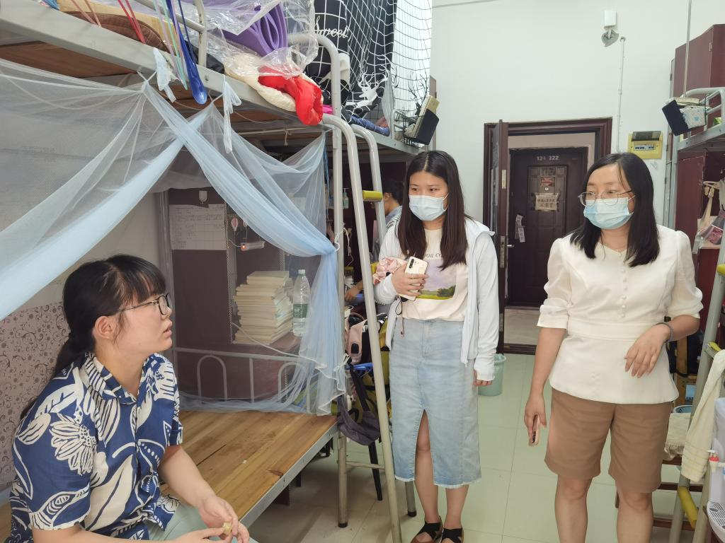 为了解返校学生思想动态,增强学生自我防范意识,确保同学们新学期学习生活正常有序进行。连日来,学院副书记、辅导员一次次走进学生寝室,关心同学们的健康和生活状况,关切询问返校后在学习生活上遇到的困难,提醒大家做好宿舍内务整理,勤开窗通风、定期消毒,做好个人防护,就遇到的难题现场协调解决。