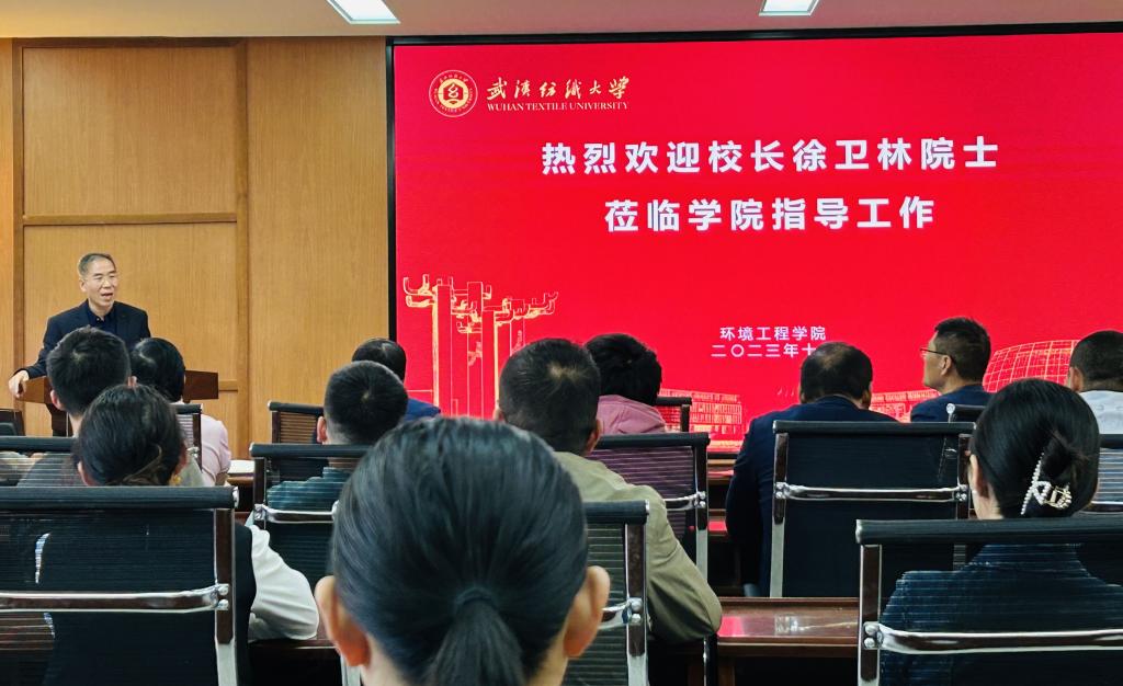在调研会上,徐卫林指出环境工程学院的发展关键在三个方面:一是要聚焦“四个面向”发力,找准科技前沿,服务区域经济社会需求,紧抓国家重大需求,特别是人民的生命健康需求;二是凝聚方向、有的放矢,有重点的培育三到五个基于环境科学,又与纺织、生物等学科密切相关方向的团队;三是要加强师资队伍建设,首先就是要有开放包容的态度,在现有的人才队伍上挖潜,其次就是要加大人才的引进力度,扩大人才队伍,形成人才梯队。