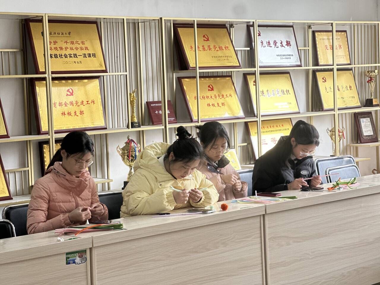 一束花的仪式感永不过时。3月7日下午,在环境学院党员活动室热闹非凡,学生党员们早早来到这里,开始了扭扭花创意DIY手工制作,同学们发挥各自的想象力,扭出了一朵朵美丽的“幸福花”,准备送给在校内各岗位上闪闪发光的“她们”