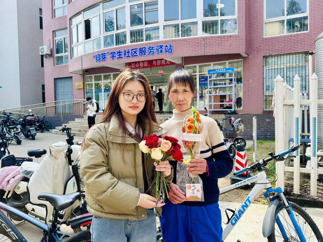 “我准备了一支“柿柿如意果”送给10栋宿管阿姨,感谢阿姨为我们创造干净整洁的宿舍公共区卫生,祝福阿姨事事如意,天天开心。”