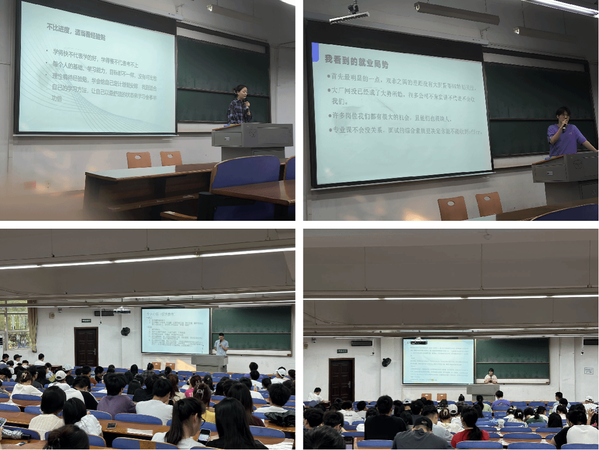 姚瑶介绍了当前的就业形势,并通过数据分析的形式对学院24届毕业生的考研就业情况进行了梳理,分析了同学们在考研备考、求职过程中存在的问题和困难,建议大家早规划、早行动,结合实际设定合理目标。
