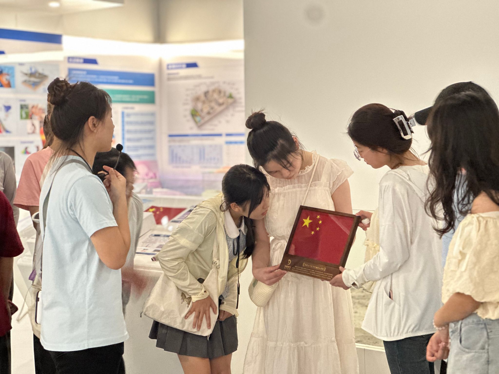 同时,为了进一步增进新生们对学校的了解,增加萌新们对学校的认同感、归属感,学院安排纺织科技馆教育专员带领新生们,分批次前往纺织科技馆与“月面国旗”面对面。参观完的同学们纷纷表示,科技馆的参观是自己印象最深刻的纺大初体验之一才在电视上看到校长徐卫林院士开学第一课上介绍的玄武岩月面国旗,开学第一天就在纺织科技馆亲眼看到了,作为新纺大人,十分骄傲!也激励了我在纺大开启新的征程”建环12401姚香雪激动地说到。