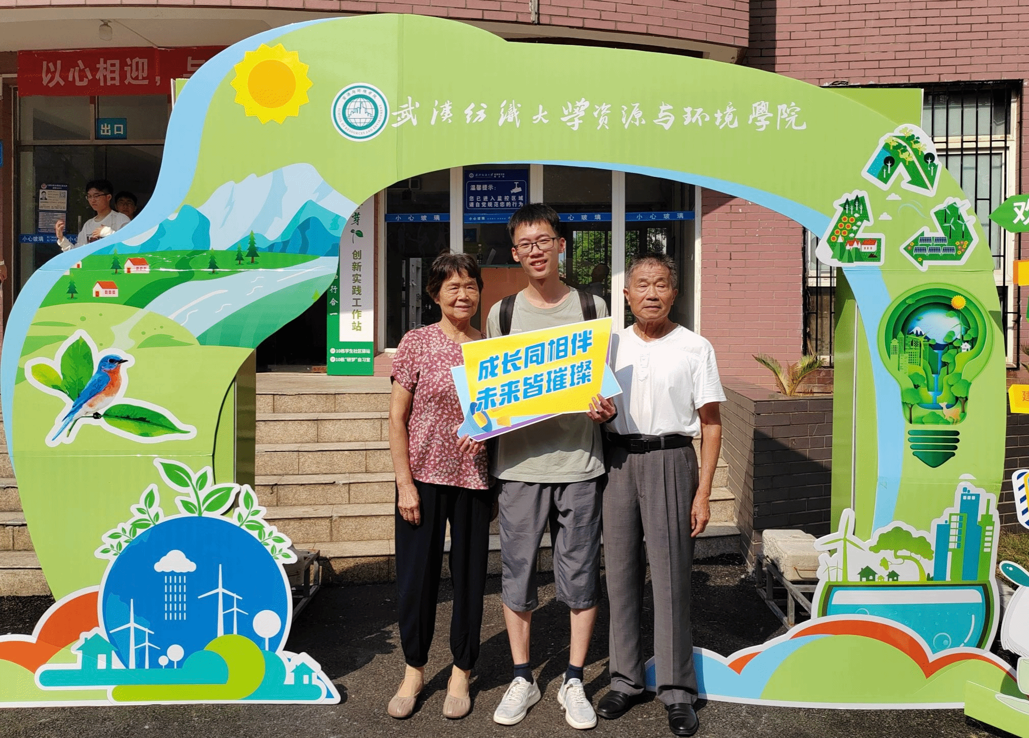 环境12402班郭东澄报到时,第一时间带着带着爷爷奶奶高兴的在拱门前打卡,他开心地说“爷爷奶奶陪我来上大学了!看大纺大美丽的校园,爷爷奶奶很开心也很欣慰,我会努力过好大学生活,继续成为他们的骄傲”。