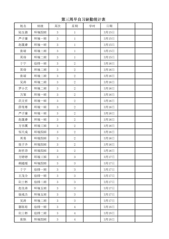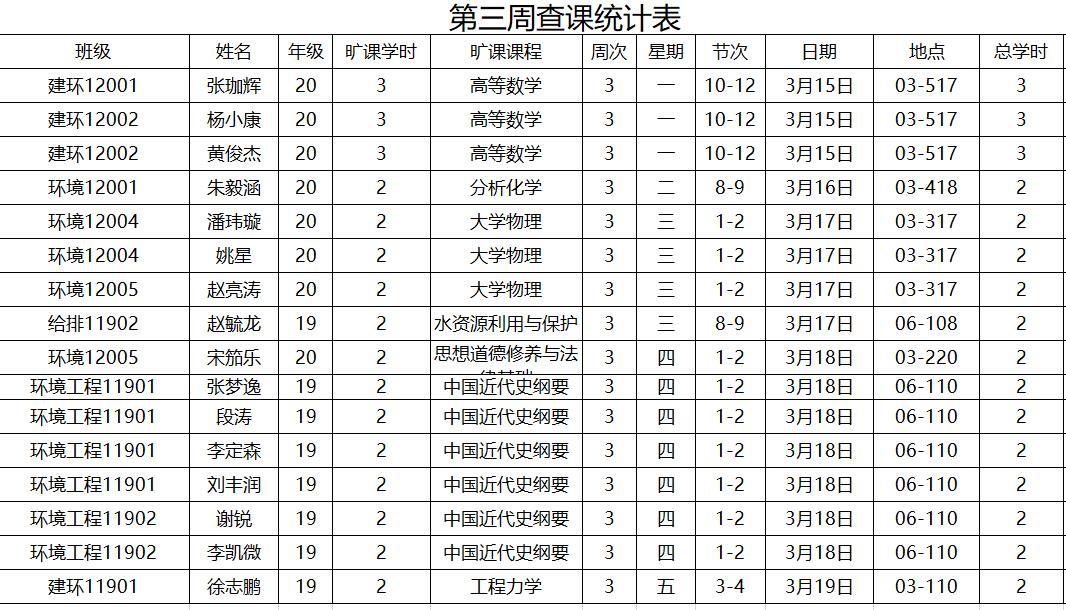 【学风建设】第三周查课通报