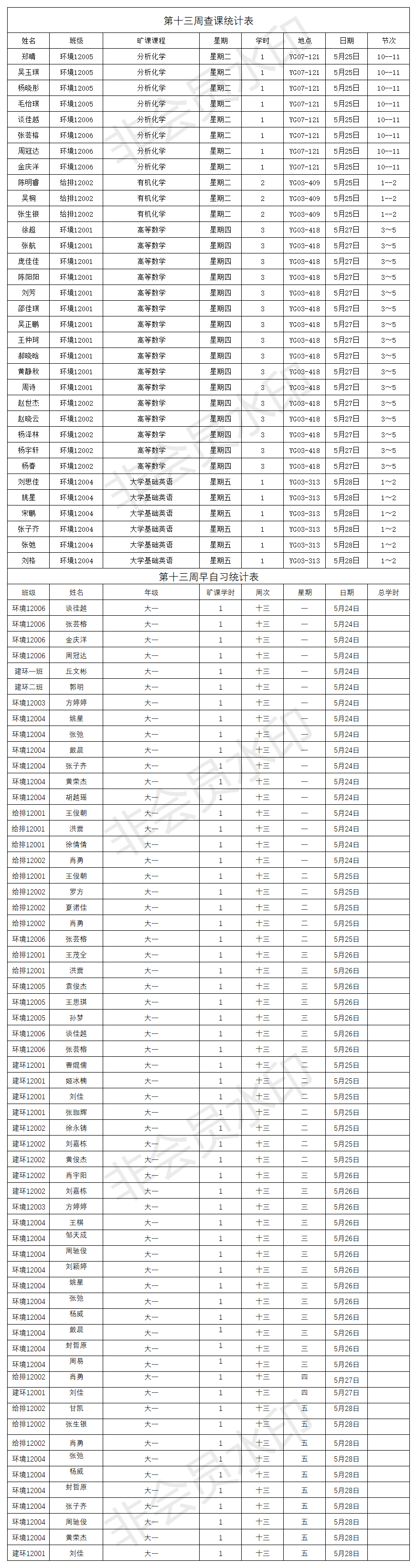 【学风建设】第十三周查课通报