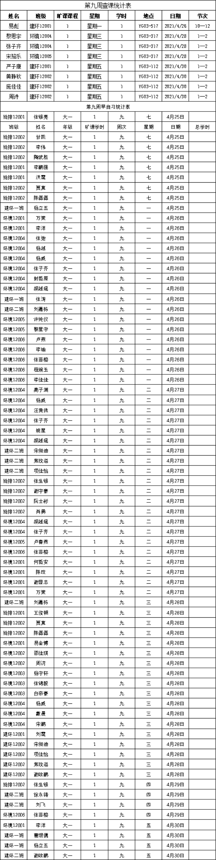 【学风建设】第九周查课通报