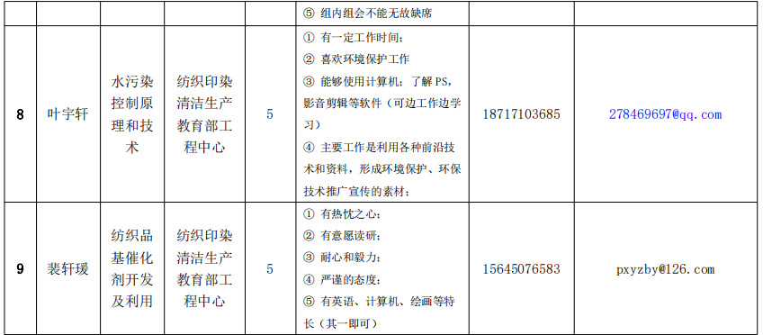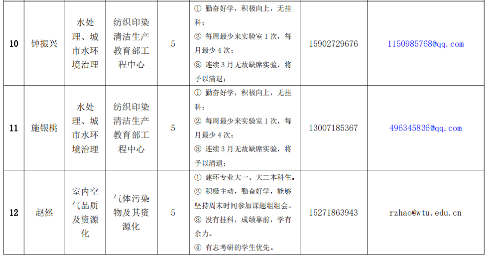 学院经过前期招募意愿征集,12名老师共需招募72名学生助手(详情见下表),欢迎有致力于从事科学研究的同学,根据表中要求、联系方式咨询对应老师(排名不分先后),由老师根据报名情况择优选拨