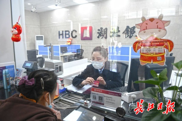 大年初五,位于武昌区中北路金融主轴的湖北银行总行营业部已开门营业,一楼大厅灯笼高挂,洋溢着浓浓的节日喜庆氛围,前来办理业务的居民络绎不绝。
