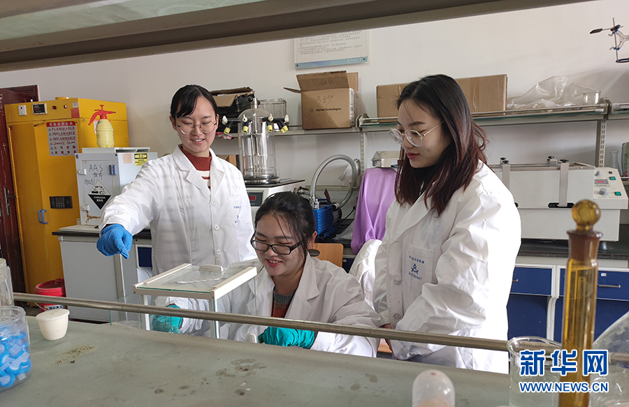 图为武汉纺织大学“固废综合处置与协同利用技术研究”创新团队开展相关实验。新华网发