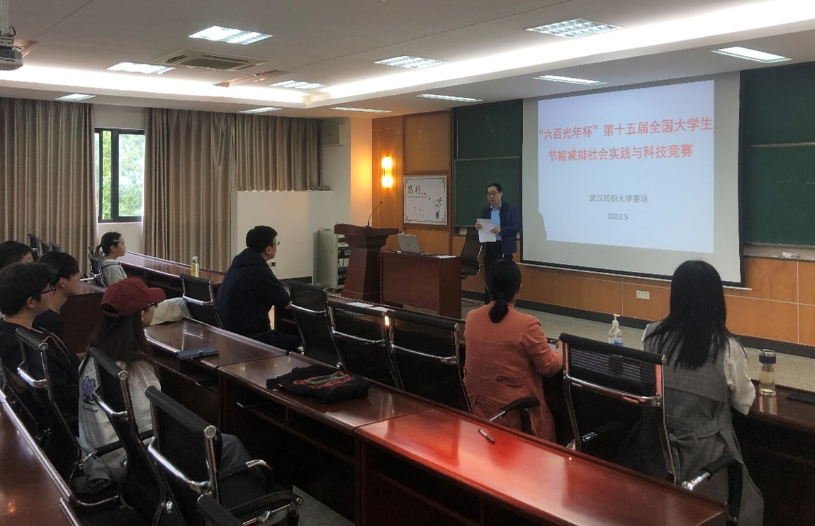 2022年5月12日,由教务处(创新创业学院)主办、环境工程学院承办的第十五届“六百光年杯”全国大学生节能减排社会实践与科技竞赛武汉纺织大学校赛在阳光校区理工楼310会议室举行。