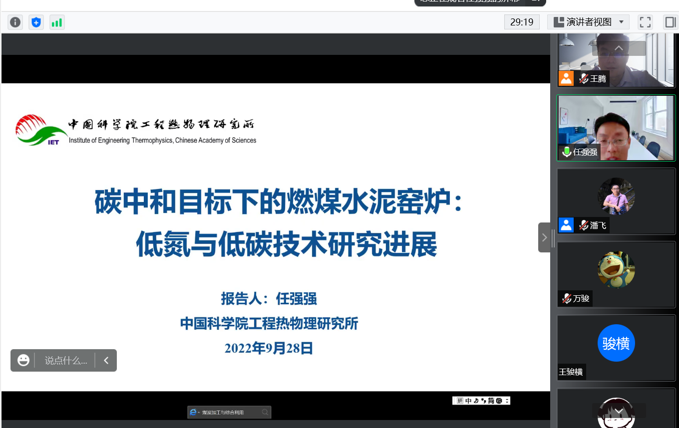 9月28日上午,学院在线上举办了学校第205期阳光论坛。本次论坛邀请了中国科学院工程热物理研究所任强强研究员作了题为“碳中和目标下的燃煤水泥窑炉:低氮与低碳技术研究进展”的报告。论坛由王腾副教授主持,学院教师和研究生参与了此次论坛。