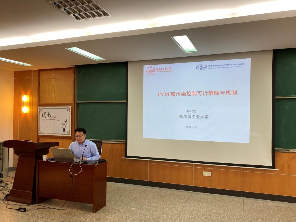 张军副教授作了“PVDF膜污染控制可行策略与机制”为题的学术报告。报告从膜污染问题入手,讲述了膜污染控制的方法;介绍了改性膜的抗吸附污染性能和蠕虫捕食过程减量技术;最后分析了工艺膜污染控制机制。