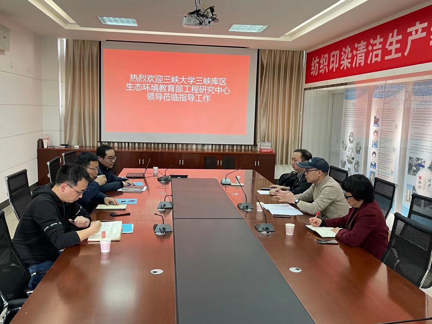 4月28日下午,三峡大学三峡库区生态环境教育部工程中心主任肖尚斌教授一行三人,来我校纺织印染清洁生产教育部工程研究中心调研交流;在工程中心主任夏东升教授等老师的陪同下,参观了工程中心实验室并进行了交流座谈。