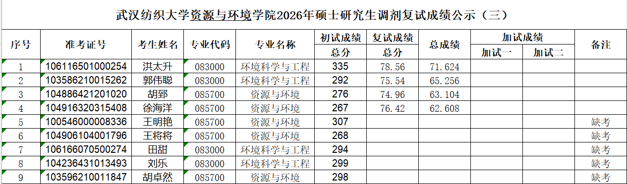 【研究生招生】开云kaiyun官方网站2026年硕士研究生调剂复试成绩公示(三)