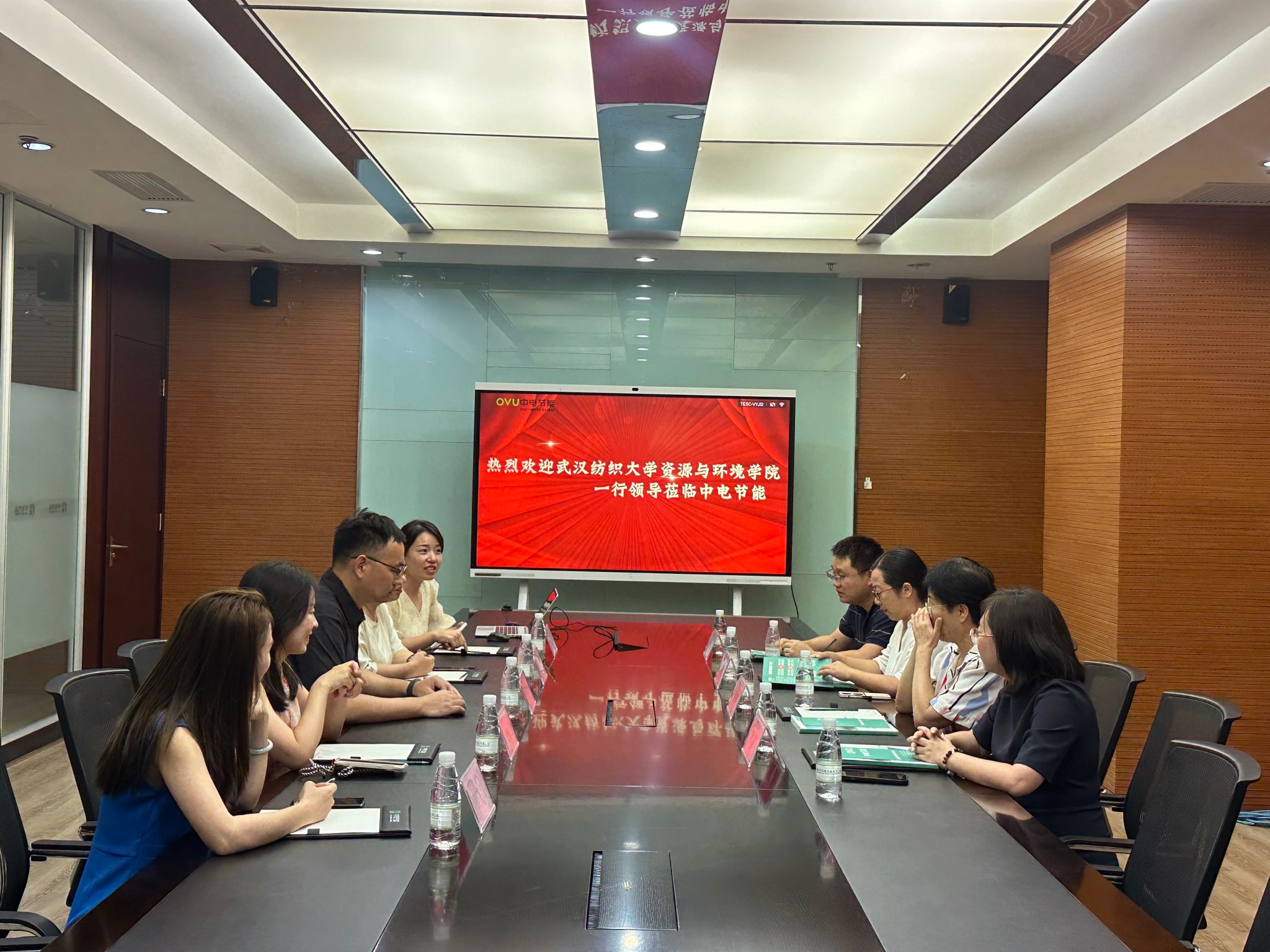 中电节能总经理、党支部书记钟凡、总经理助理肖竞、总经理助理、董事会秘书程诗嫚、能源中心副总经理朱璇、办公室副总经理鲍宇凡等管理层对学院一行给予了热情接待。