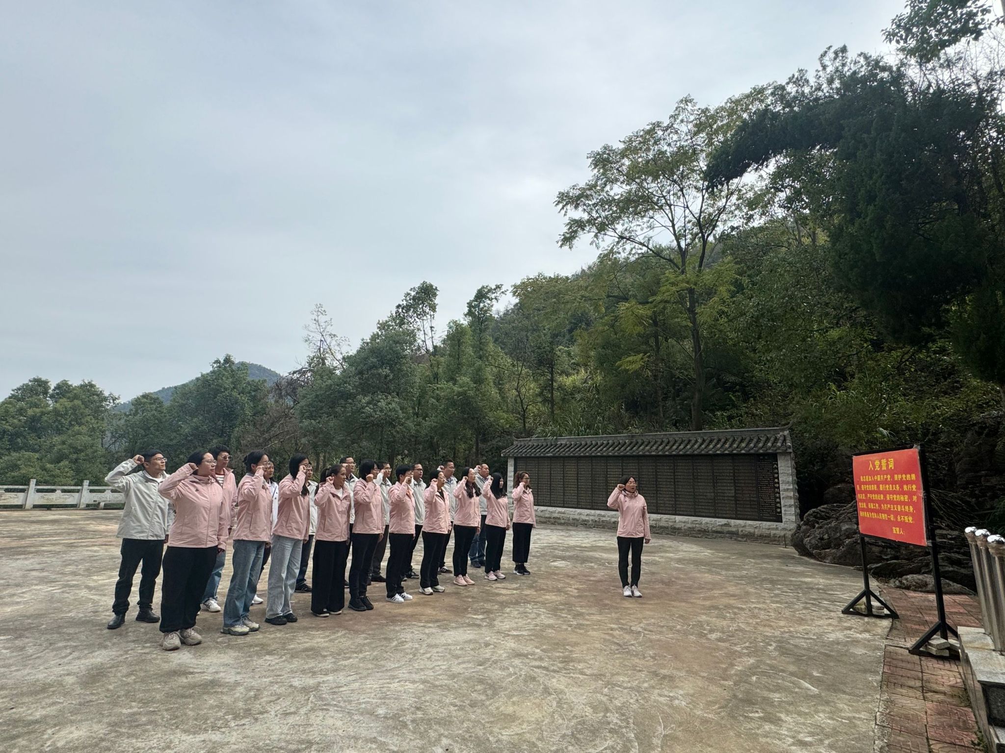 8日下午,全体党员来到南山头革命纪念馆开展党性教育活动,在烈士纪念碑前举行了庄重的祭奠仪式。全体党员整齐列队,向革命烈士鞠躬敬礼,重温入党誓词,深切缅怀浴血牺牲的革命先烈。