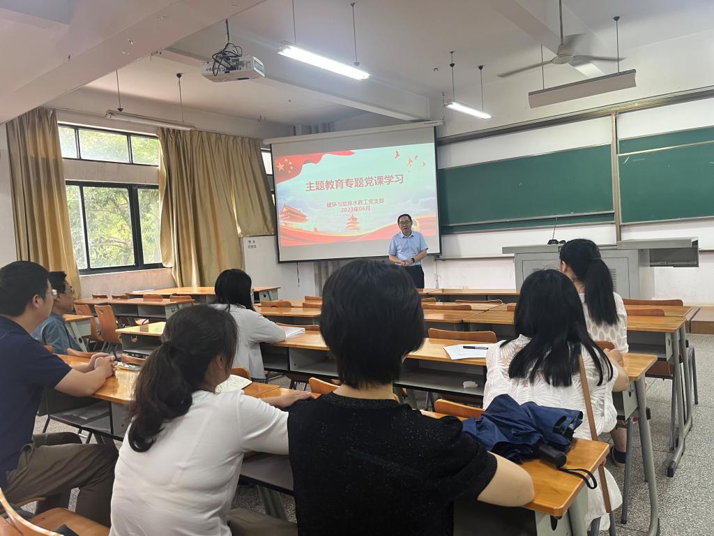 6月15日,建环与给排水教工党支部在崇礼楼210开展主题教育活动,深入开展学习贯彻习近平新时代中国特色社会主义思想主题教育。本次会议由党支书池寰瀛主持,院长潘飞主讲“缅怀革命先烈 传承红色基因”,支部党员教师参加。
