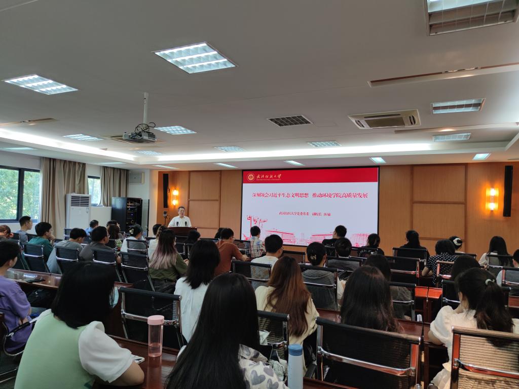 6月1日下午,环境工程学院召集院全体师生党员开展学习贯彻习近平新时代中国特色社会主义思想主题教育专题学习会暨6月集中政治理论学习大会,副校长唐敏讲授题为《深刻领会习近平生态文明思想推动环境学院高质量发展》的专题党课,学习会由党委书记谢晓萍书记主持,院班子全体成员和近60余名师生党员参加学习会。