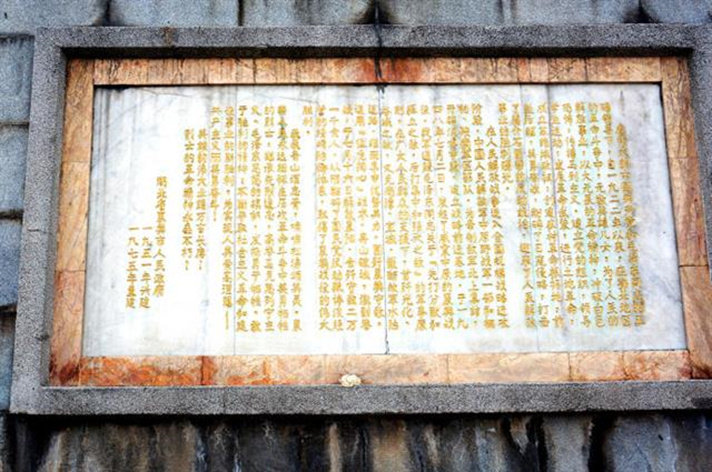 踏上了最后一节台阶,站在高耸的革命烈士纪念碑前,望着碑上的“革命烈士纪念塔”七个大字,心中肃然起敬。塔体两侧刻有两幅浮雕,基底上刻有记载革命烈士历史功绩的碑文。浮雕和碑文向我们诉说着那令人难忘的年代,每一个烈士的背后,都有着令人无比震撼的故事,但每位烈士的目标都是一致的,都是为了人民的解放,为了新中国的成立!碑后的革命烈士墓成山丘状,我想后人们在碑前对先烈的尊敬和感激之情,先烈们也会感受到。