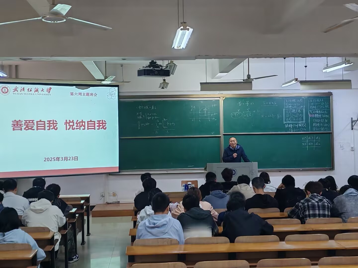 拥抱自我,赋能成长班会中,各班班主任围绕“善爱自我悦纳自我”主题,通过案例分享、互动问答等形式,引导学生正确认识自我价值、接纳自身优缺点。环科12301班通过“优点轰炸”小游戏,鼓励同学们互相挖掘彼此的闪光点,在轻松的氛围中传递温暖与认可;2024级年级则以“写给未来自己的一封信”活动,帮助同学们梳理成长目标,激发内在动力。辅导员老师强调:“悦纳自我是心理健康的重要基石,希望同学们学会与压力共处,主动寻求支持,用积极心态面对学习和生活。”