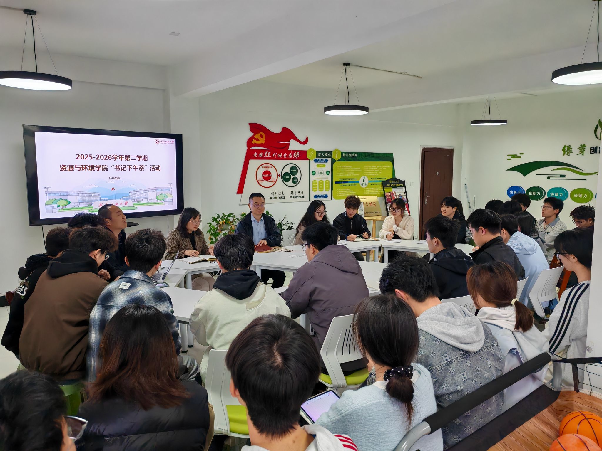 4月2日下午,资环学院第8期“书记下午茶”在10栋“绿芽创新实践工作室”学生社区举行,学院党委书记郭俊、副书记姚瑶、团委书记毛成兴与学生代表面对面,倾听他们的声音,并就大学生职业规划、学生干部技能提升、团学工作开展等话题进行了探讨。