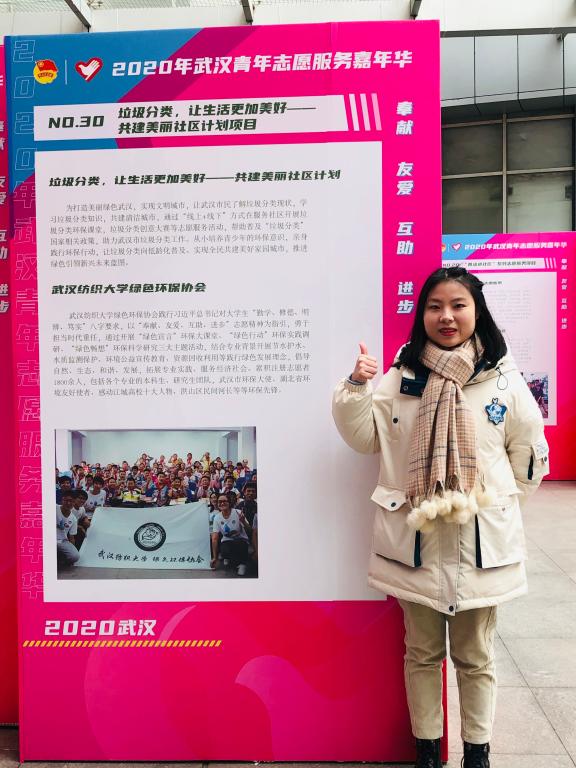 为贯彻落实习近平总书记关于志愿服务的重要指示精神,大力弘扬志愿服务精神,12月13日下午,由共青团武汉市委员会主办的2020年武汉青年志愿服务嘉年华在武汉市青少年宫隆重举行,会议表彰了2020年武汉市青年志愿服务“青春社区”优秀项目、“新青年下乡”活动十佳项目、第四届武汉青年学生艾滋病防治宣传活动先进集体、先进个人、优秀指导老师等。我院绿色环保协会的《垃圾分类,让生活更加美好——共建美丽社区》项目荣获“青春社区”项目大赛二等奖。