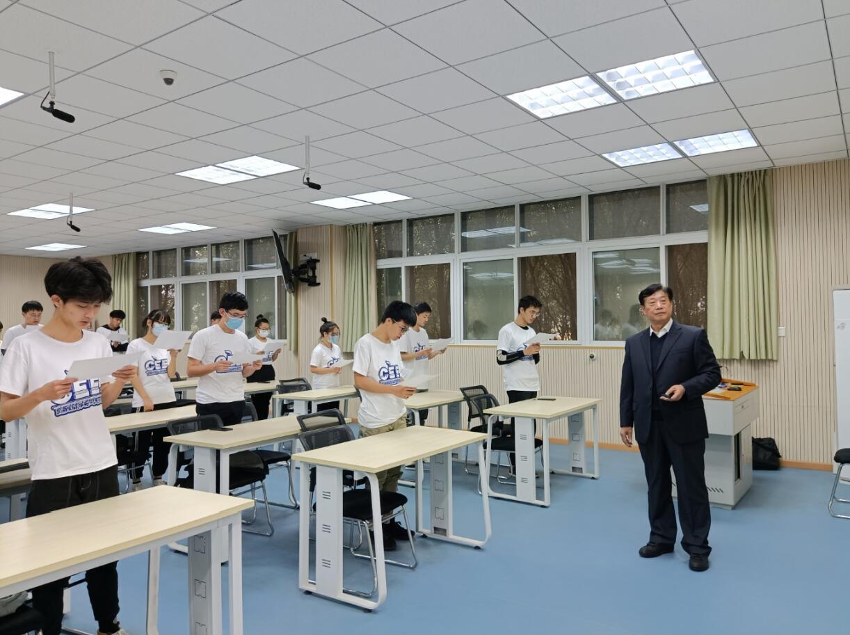 最后,杨教授还带领同学们齐声朗诵《环境:您人类的命运》这首诗歌颂环境的诗歌,他将环境学科的历史与深厚的文化底蕴展现的淋漓尽致,字里行间满是殷切希望,增添了同学们学院、专业的自豪感,鼓舞他们为生态文明建设做出更大贡献。