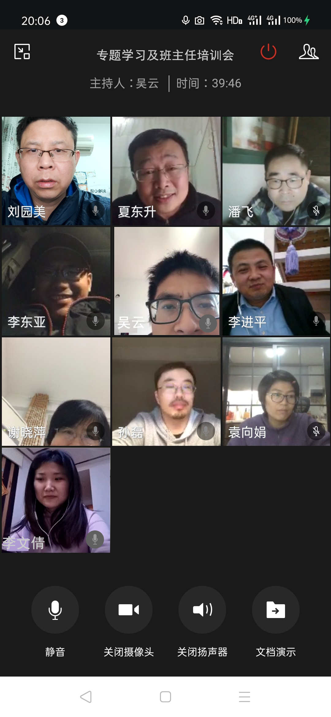 为加强班主任队伍建设,增强班主任在疫情防控期间的思想政治教育工作实效性,4月21日晚,院学工办组织了班主任工作会。学院班子成员、辅导员及班主任潘飞、李东亚、袁向娟、孙磊等参加了会议,会议由副书记刘园美主持。