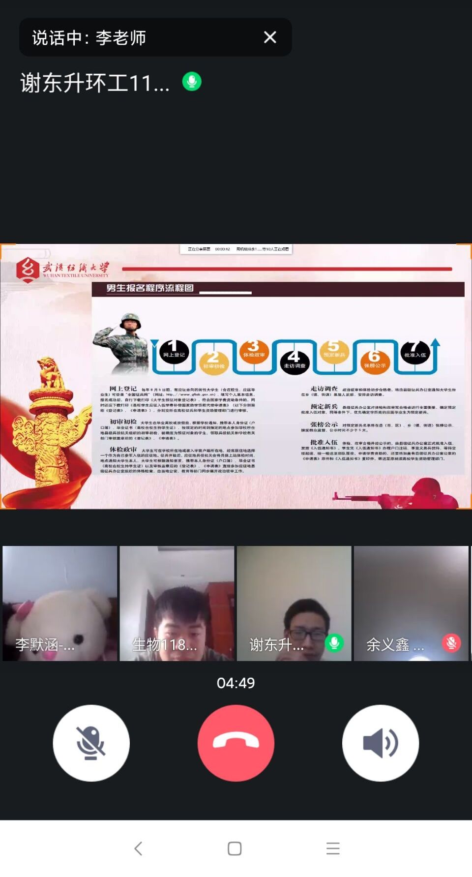 为鼓励广大学生积极响应国家号召,根据湖北省《关于做好2020年度征兵宣传工作的通知》精神,环境学院副书记刘园美及辅导员陆续开展了大学生征兵动员大会,并参加了各班征兵主题班会系列活动。