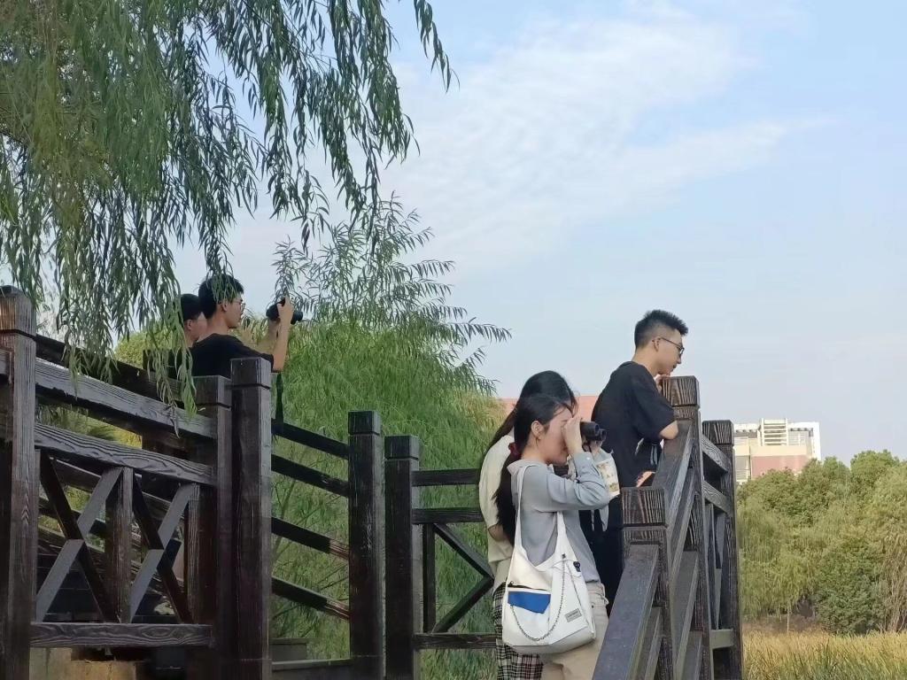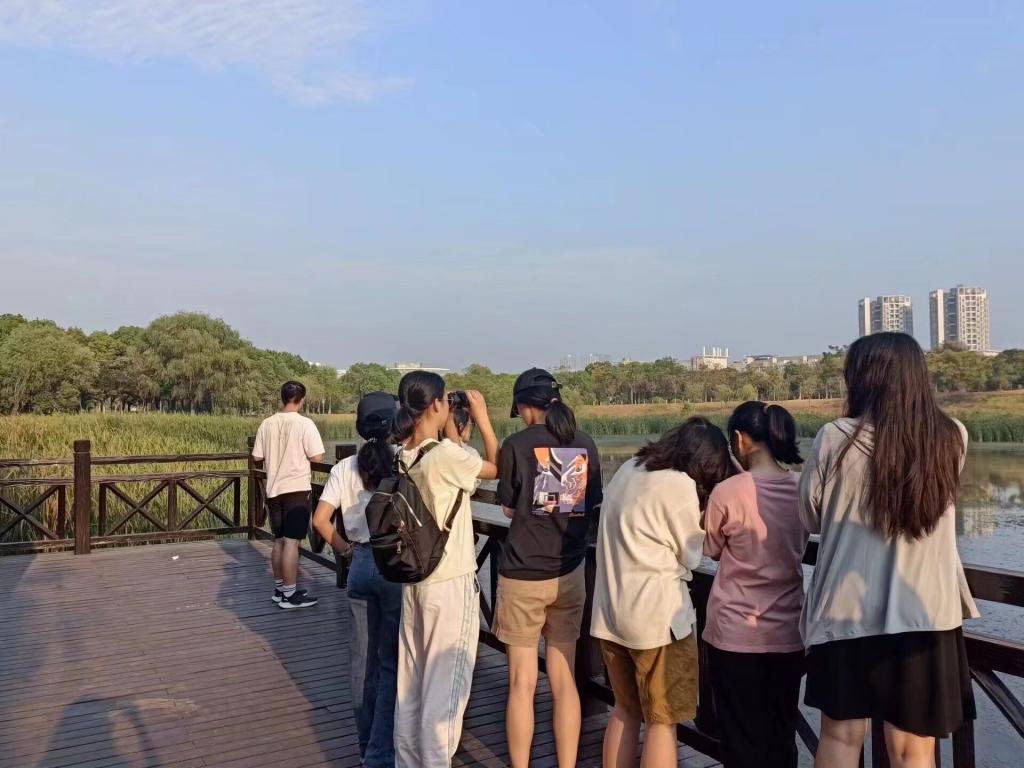 10月1日上午7点,迎着清晨的阳光,新申请入会的绿色环保新会员30余人在东锦湖开始了他们入会的首场观鸟活动,绿色环保协会观鸟部部长袁怡晗带队,沿着校园湿地、东锦湖寻觅鸟的踪迹,据绿协志愿者介绍,校园内有记录的鸟种包括灰喜鹊、乌鸫、黑水鸡、珠颈斑鸠、白颊噪鹛、斑嘴鸭等,新会员们也在观鸟活动中熟悉了校园环境,认识到不同的鸟种,提升了对生物多样性保护的认识。