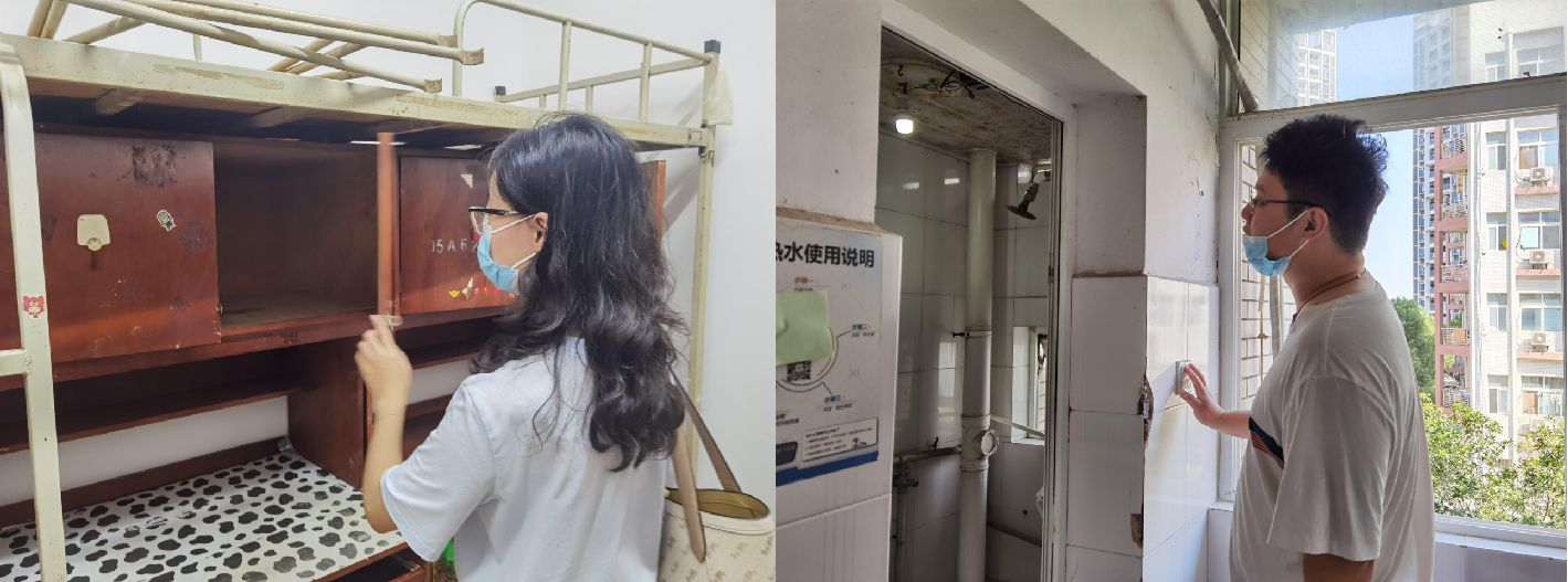 副班主任一一核实新生宿舍床位、检查宿舍水电、门窗桌椅等设施,如门锁是否损坏、桌椅是否齐全、洗脸盆和厕所等水管是否漏水、床铺是否需要更换加长等情况,对有需要维修的情况进行如实详细登记,以确保新生能够舒心、安心的入住。“新生宿舍明亮干净,阳台也很宽敞,班群里新同学们很期待他们的宿舍。”环境12101班副班主任宋致远如是说。