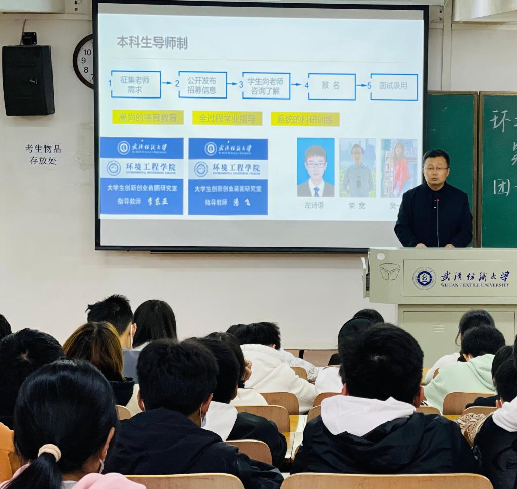 为鼓励学生将专业知识与实践相结合,走出教室,走进实验室,尽早做好学业规划。10月27日下午,学院于崇德楼T101教室开展专业实践导航讲座。纺织印染清洁生产教育部工程研究中心主任夏东升应邀主讲,学院党委副书记姚瑶、新生辅导员郁星、22级全体学生参加了本次讲座。