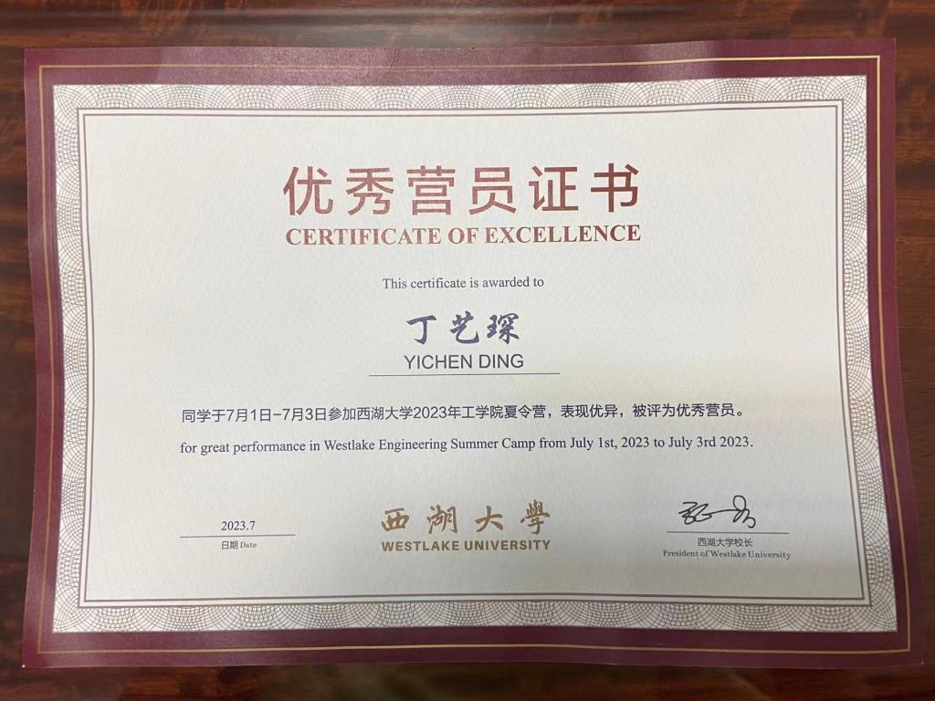 在西湖大学的科研探索之旅,让我深刻感受到了学术的无限魅力和科研的无尽可能。我相信,通过不断学习和实践,我会在这里收获更多的知识和成长。回顾这段旅程,我深知自己在学术路上还有许多未知需要探索,但我会努力不懈,不断前行。暑期夏令营让我收获满满,更重要的是,它为我的未来学术发展打下了坚实的基础,这次宝贵的经历将激励我深入探索多学科交叉融合,在学术研究的道路上走得更高更远。