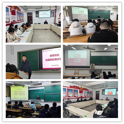 一元复始,万象更新。为更好地帮助同学们开启新学期生活,227日,学院领导班子各年级辅导员、班主任深入各班级分别召开了“奋楫扬帆向着新的美好出发”主题班会,带领同学们回顾过去一年的发展及成绩,并就新学期心理调适、状态调整、开学安全电信防诈等进行主题教育。各班级还结合寒假社会实践、把最美纺大带回母校”社会实践等畅谈寒假见闻,交流感想和心得。