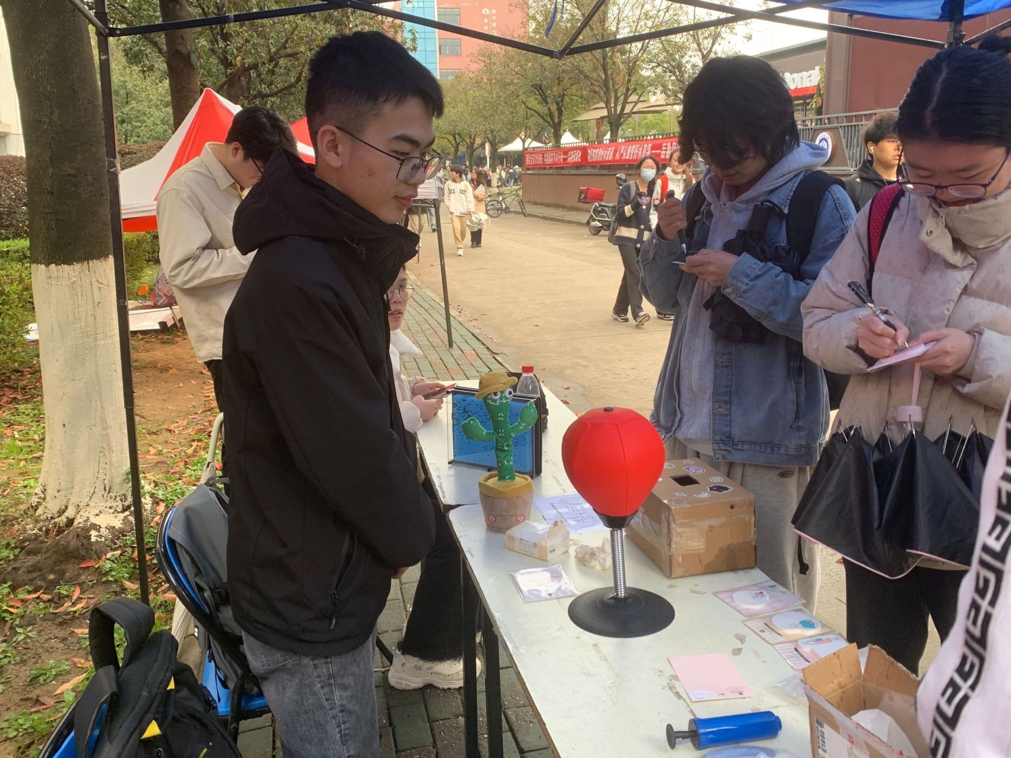 3月25日,学院在一食堂北门开展“丢掉烦恼、解决烦恼”贴纸大作战。同学们将心中的烦恼写在便利贴上,成为一张“烦恼纸”,投入“烦恼树洞”箱中,并在其中随意抽取一张“烦恼纸”,写下解决它的方法,二级站工作人员将解决方法反馈给“烦恼纸”的主人,帮助同学们缓解郁闷心情。活动现场还提供了“三维针手摸益智解压”、“减压拳击球”等解压小工具,供同学们释放压力,舒缓身心,更好地生活和学习。