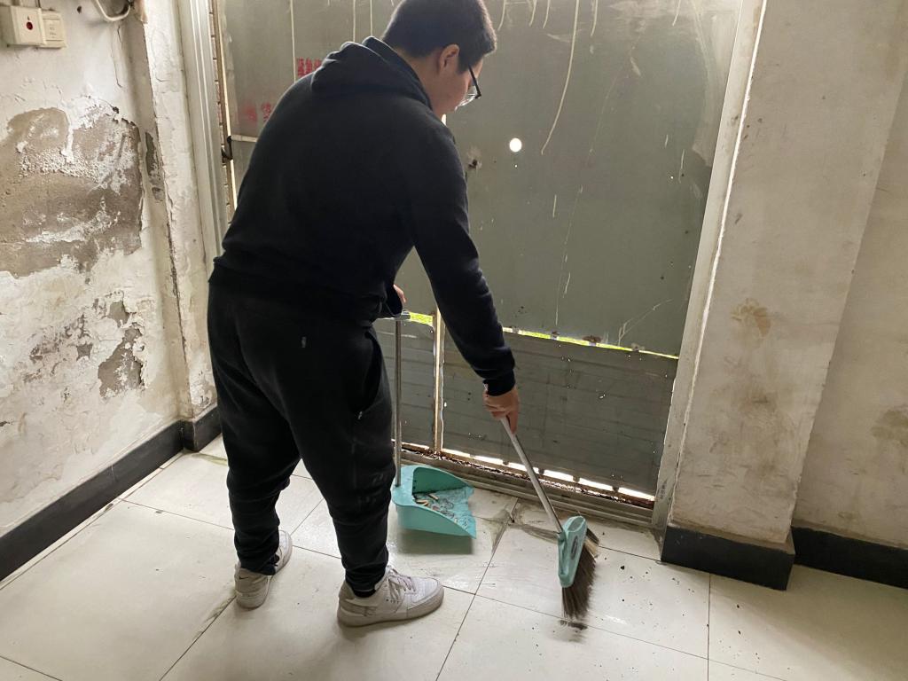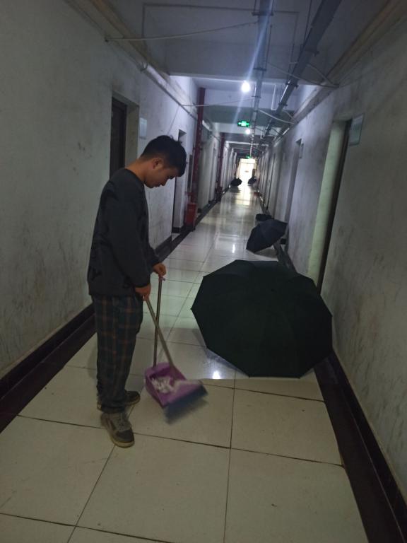 活动中,每个同学都积极主动、十分上心,他们分工协作、互帮互助,不怕脏不怕累、全身心投入,很快将寝室楼打扫完毕,宿舍走道干净整洁、面貌焕然一新,给宿管阿姨、后勤工作人员减轻了工作压力。
