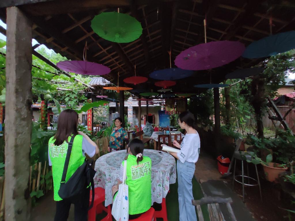 服务队成员们深入村湾,走访调查每户人家,了解村民们的实际需求和现实难题,记录他们对建设更美小朱湾的建议。队员们了解到,小朱湾从六年前的“空心村”到如今的美丽村湾,主要经营民宿和农家乐,共有经营户36户,是生态文明建设的显著成果。但是大家也普遍反映,游客群体较为单一、老年人较多、受季节影响较大等不利因素。