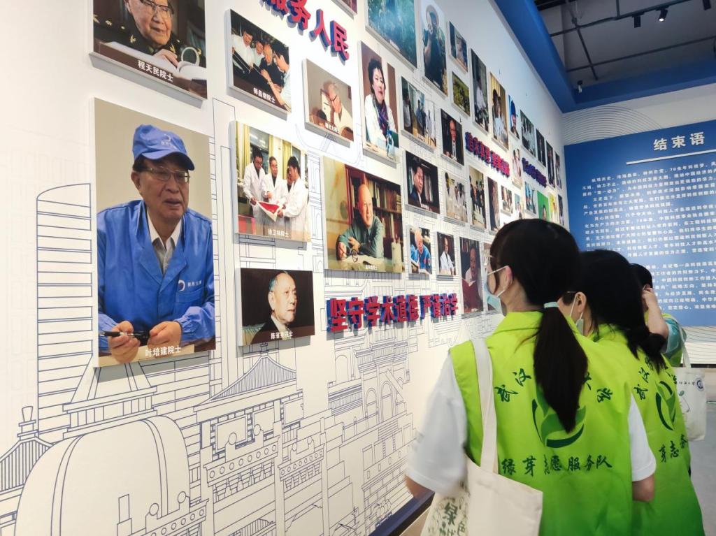实践团队重点参观了“众心向党,自立自强——党领导下的科学家”主题展,在这里,团队成员目睹了中国航天火箭、C919大飞机模型以及武汉纺织大学校长徐卫林院士的实验团队设计的“月面国旗”等高新技术成果。并通过历史照片、信件手稿复印件等展示感悟党的百年奋斗征程中科学家精神。