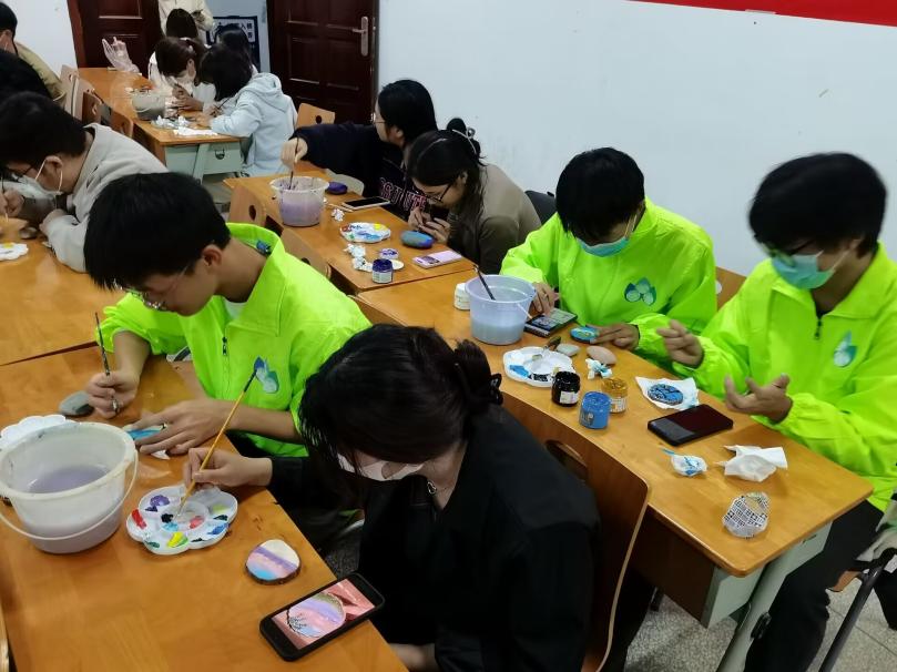 活动中,每位同学都发挥了自己的想象力和创造力,笔锋在石头上勾勒出的绿水青山、林间飞羽……无一不展现着大家对于环保DIY的热情。