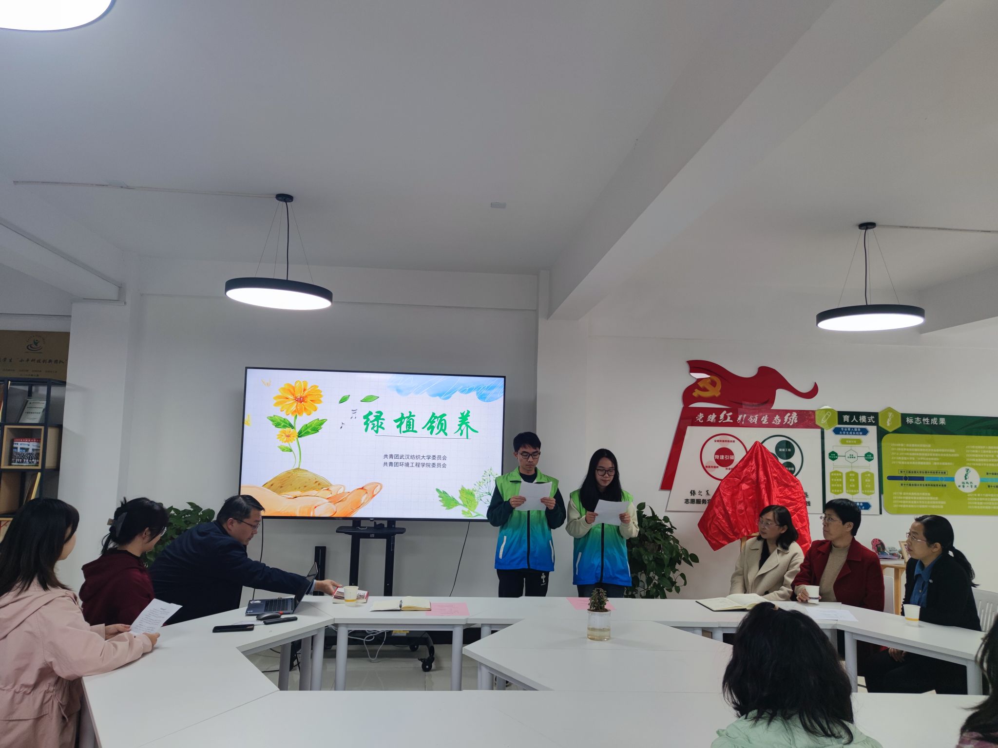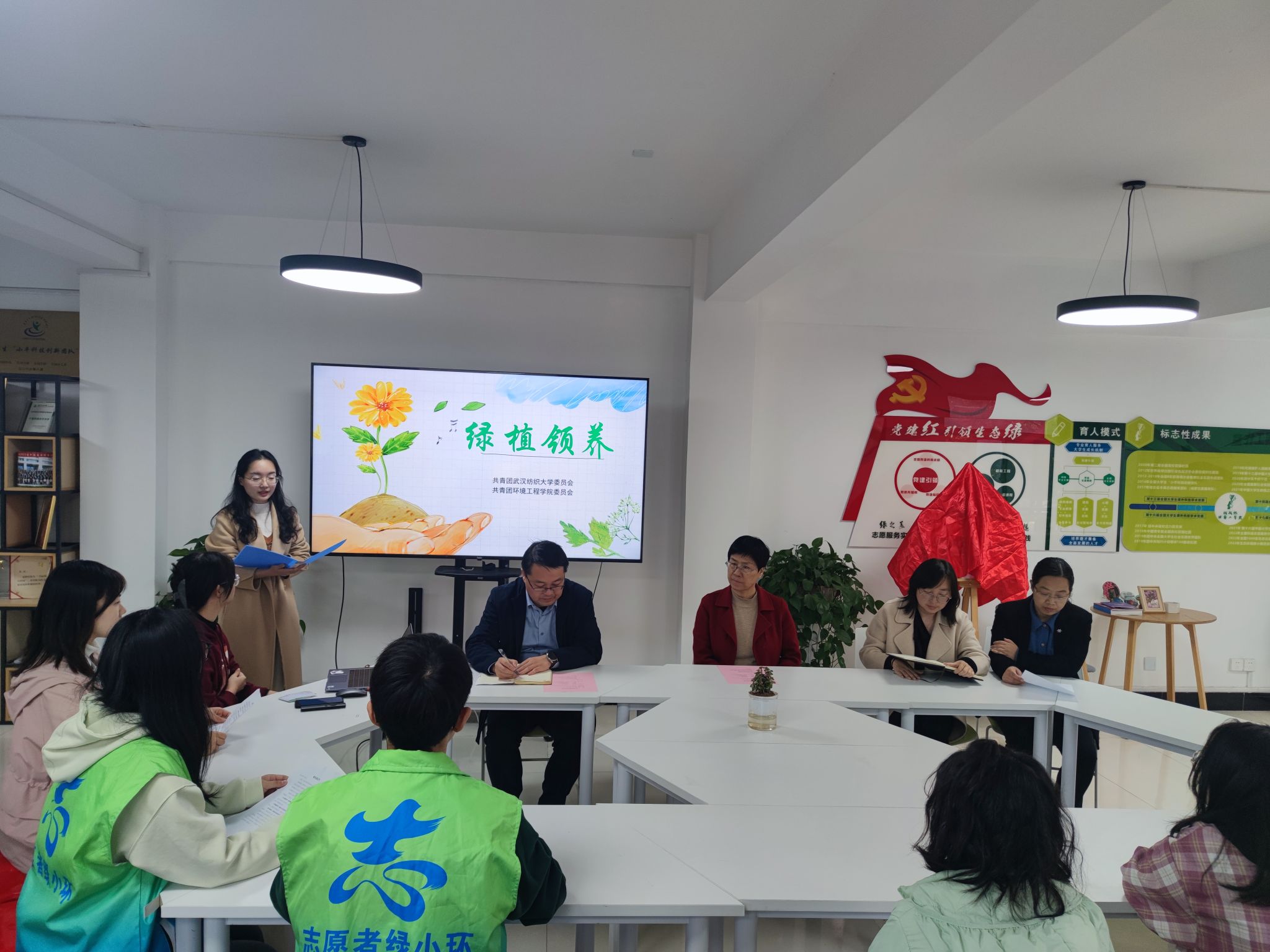 活动开始,大家共同观看了绿色宣言微视频,绿芽志愿者发起绿色倡议,呼吁大家爱护绿植,做美丽校园的守护者、绿色生态的宣传者和绿化成果的保护者,绿协会长袁怡晗宣读绿植领养规则。